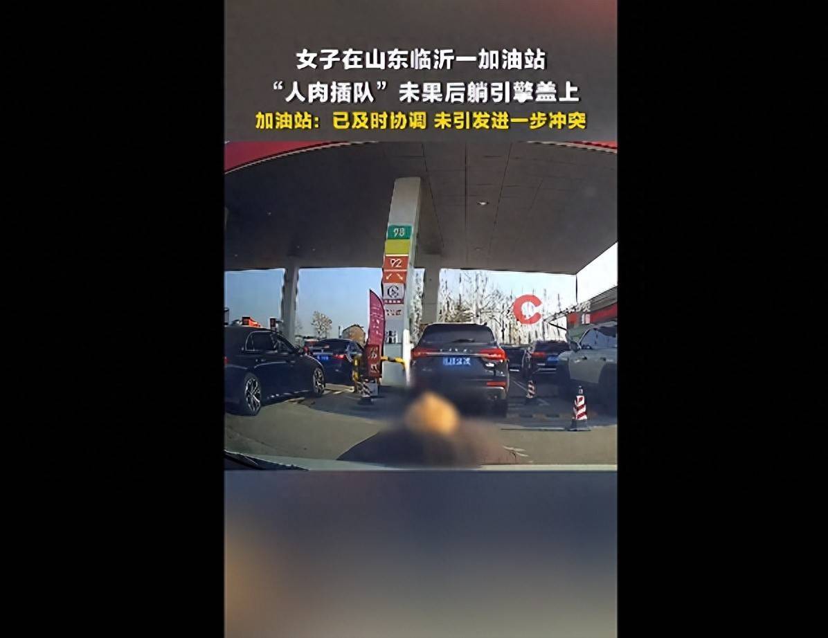 2月24日,山东临沂,有网友发布了一段行车记录仪视频,一男子开车到加油站加油时,遭遇了“人肉插队”事件。当时,车辆正在排队,一名女子突然从旁走来,站到男子车前,试图为自家车辆插队,随后直接躺车引擎盖上。
